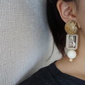 天然石やヴィンテージビーズを使用した大ぶりイヤリングです。全体的に追いついた色味で、大振りながらも使いやすいのではと思います。